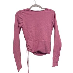 Elegant mauve blouse with a ring detail. Features a stylish front tie. Ideal for both casual and evening wear.