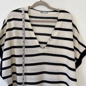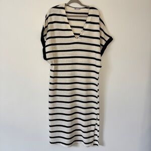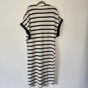 Zara Maxi Dress Striped Black White Loose Cotton Vented Rustic Tunic Beachy Sz M