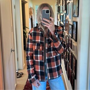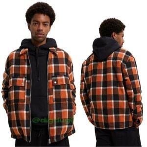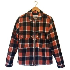 Zara Men or Women Plaid Orange Black Zip Up Quilted Shacket Jacket Heat Keeper