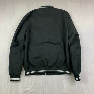Zara Mens Bomber Jacket Medium Black Full Zip Long Sleeve Varsity Striped Trim
