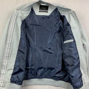 Zara Mens Bomber Jacket Medium Gray Full Zip Long Sleeve Varsity Striped Trim