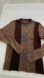 Stylish crewneck sweater with bold brown and gray panels. Perfect for a modern look.