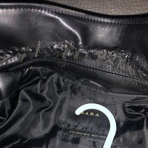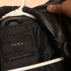 Timeless yet edgy, this cruelty-free classic in versatile black boasts moto-inspired details. Tailored fit, premium faux leather, and a stylish and ethical wardrobe essential. Please see pictures for condition, there is some peeling around the collar. Elevate your look effortlessly!
