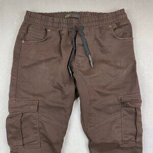 Zara Mens Pants Large Brown Cargo Soft Denim Jogging Fit Tapered Outdoor 30"