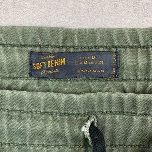 Zara Mens Pants Medium Green Moto Soft Denim Jogging Fit Tapered Outdoor Joggers