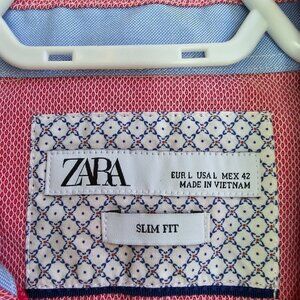 Zara Men's Red/Pink Dress Shirt, Slim Fit, Long Sleeve, Size L