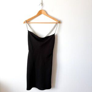 Zara Metal Jeweled Chain Straps Cowl Neck Mini Dress Black Size XS