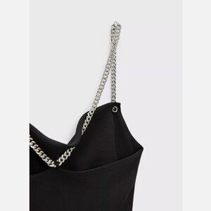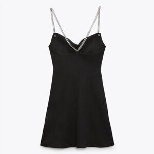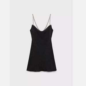Zara Metal Jeweled Chain Straps Cowl Neck Mini Dress Black Size XS
