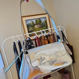 Cute little shoulder bag with adjustable strap and a snap closure. Cute and can fit all the essentials.