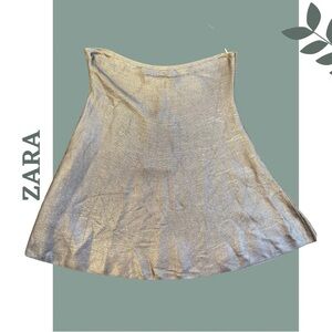 Zara Metallic Silver Flared Mini Skirt Holiday Party Pull On Size Medium