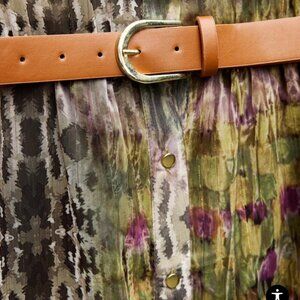 Like new condition. Only worn once, briefly. Beautiful, long maxi dress. Button down, with belt included. Sheer on top, lined on bottom. Size small.