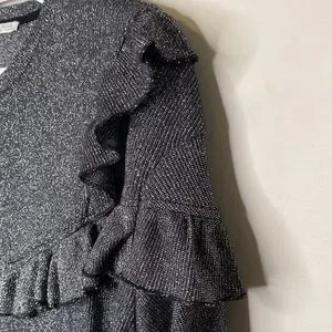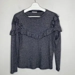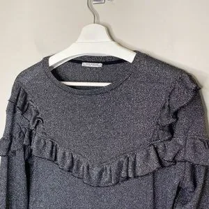 Zara Metallic Thread Ruffled Sweater