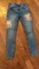 Zara Mid Rise Embroidered Distressed Raw Cuff Skinny Jeans Lt. Wash Size 4