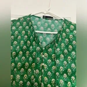 Beautiful print midi dress from Zara. Can be worn as a coverup for beach or as an easy outgoing dress. Very beautiful, summer colours.