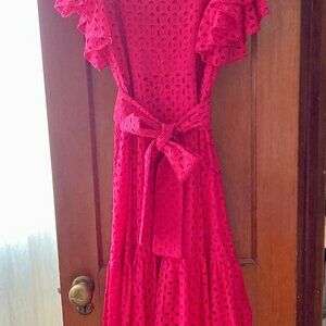 Zara Midi Eyelet Dress in Raspberry BNWOT