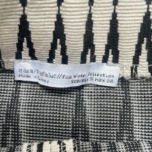 Zara Midi Pencil Skirt Boho Tribal Aztec Print Ivory Black Stretchy Cotton S