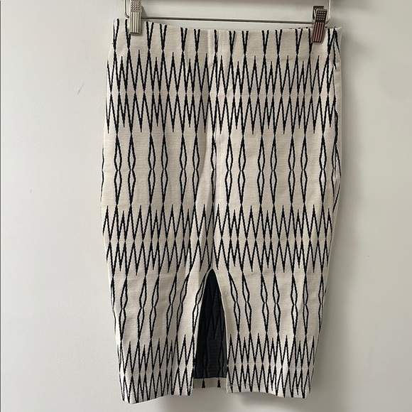 Zara Midi Pencil Skirt Boho Tribal Aztec Print Ivory Black Stretchy Cotton S