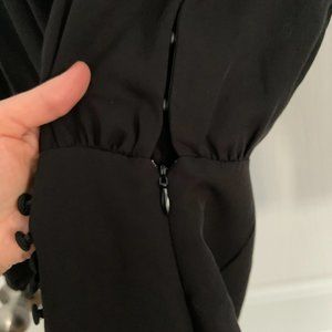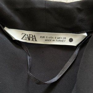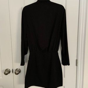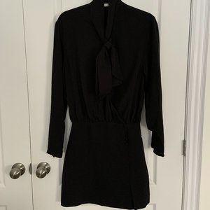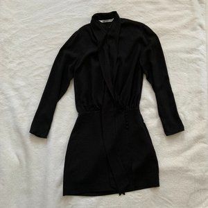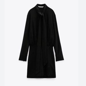 Zara Mini Dress Long Sleeve Buttons Neck Tie Black Y2K Academia Goth Size S