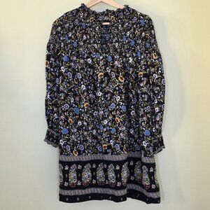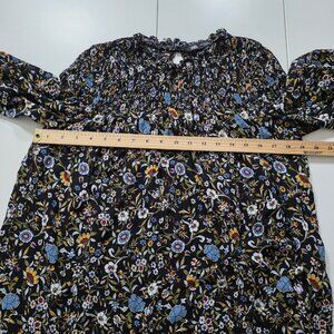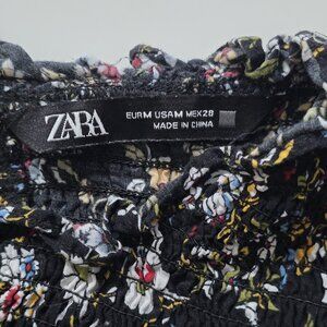 Zara Mini Tunic Dress Women L Black LS Smocked Floral Whimsigoth Boho Printed