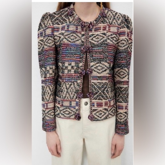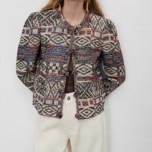 Zara Multicolor Patterned Knit Jacket