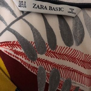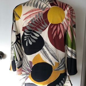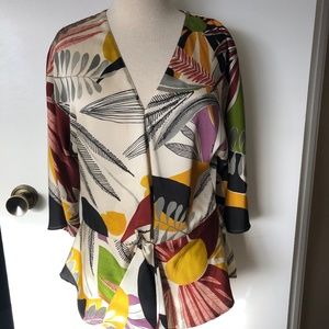 Zara multicolour print top, size small, excellent condition. Three-quarter sleeve, front tie feature. Polyester satin.