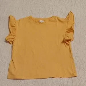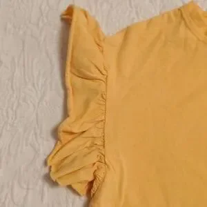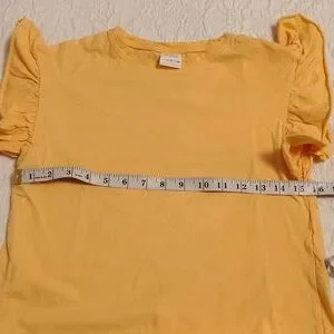 Add flair with this mustard ruffle sleeve tee. Ideal for casual wear. size 11-12 see pictures for exact measurements