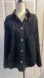 Stylish black jean jacket. Features fringe detail on the front. Button-up closure. Perfect for casual wear. Please note this does not have side pockets.
