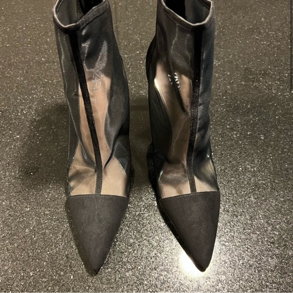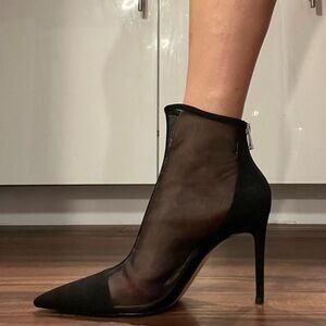 Zara NWOT Black Mesh Net Pointed Toe High Heel Booties Ankle Boots