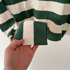 Zara NWOT Green Cream Striped Crop Long Sleeve Crewneck Sweater