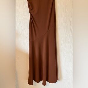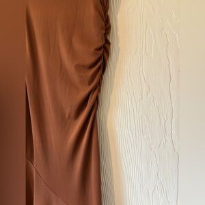 Zara NWT Asymmetrical Sleeveless Brown Toffee Maxi One Shoulder Ruched Bodycon Contoured Mermaid Tail Dress