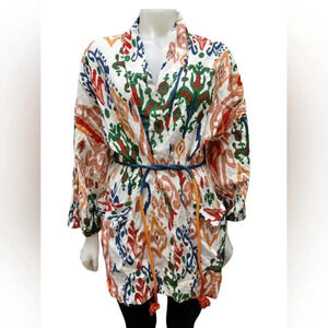 Zara NWT Hanoi Kimono Multicolored Linen Blend Size Large