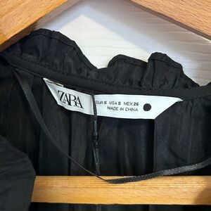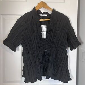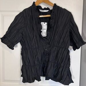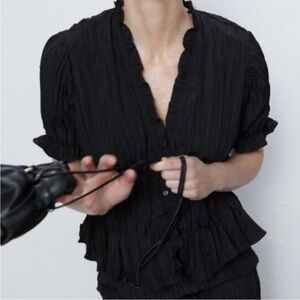 Zara NWT Pleated Black Ruffled Button-Up Blouse- size S