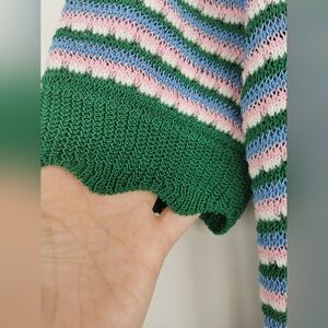 Zara NWT striped knit polo shirt with flower buttons Size M Green Pi nk blue
