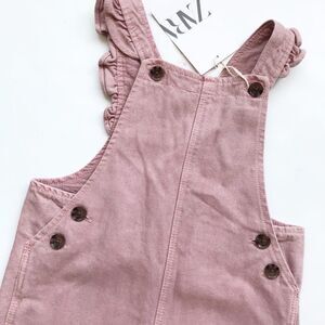 Zara NWT dusty rose denim ruffle overalls 12-18 months