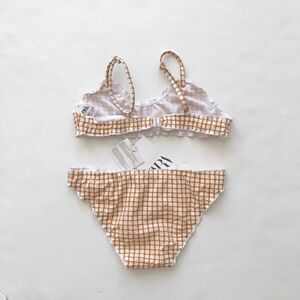 Zara NWT mustard grid plaid 2 pc bikini 8-9Y