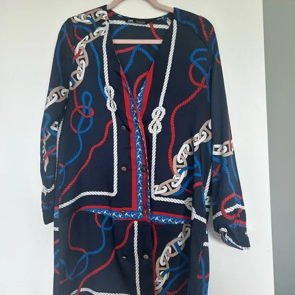 Zara Navy Dress with Rope Pattern
