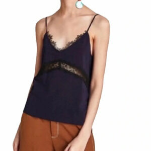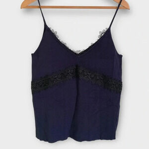 Zara Navy Knit Lace Cami Camisole Tank Top Sz S
