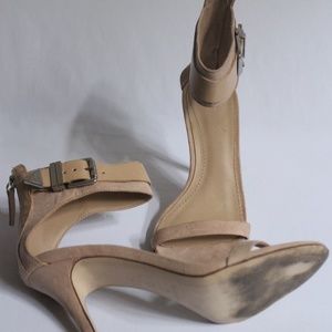 Nude Suede High Heeled Sandals with Zip up feature. Size 7. Excellent Condition!