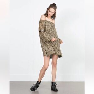 Zara Off Cold Shoulder Mini Floral Boho Long Sleeve Flowy Dress