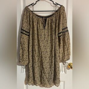 Zara Off Cold Shoulder Mini Floral Boho Long Sleeve Flowy Dress Size Large