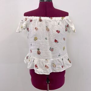 Zara Off Shoulder Linen Top Fruit Print S