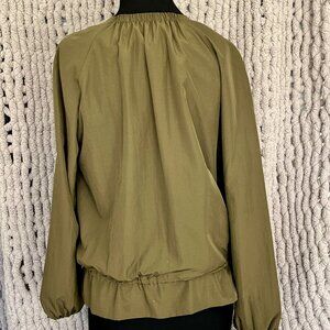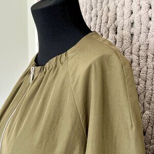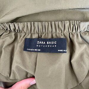 This Zara khaki green jacket is a standout layering piece for Fall with its voluminous Sleeves, cinched hem & street ready soft tailoring. The gathered neckline, ruffled drawstring hem, and tapered sleeves, it’s designed for transitional layering and fashion-forward comfort.