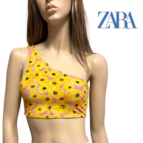 Zara One Shoulder Crop Top Tank Pullover Bralette Bandeau Sunflowers Floral