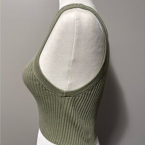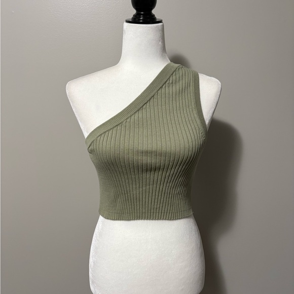 Zara One-Shoulder Ribbed Knit Crop Top Olive Green