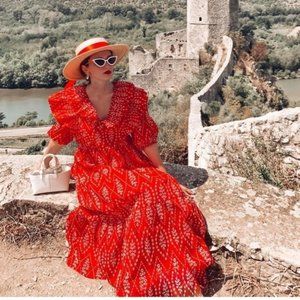 Zara Openwork Embroidered Midi Dress Blogger Fave Red White Size Medium