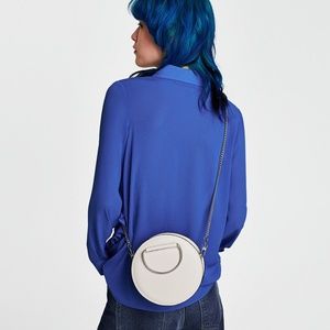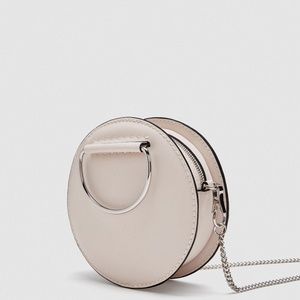Crossbody bag. Metal handles. Lined interior. Shoulder strap.