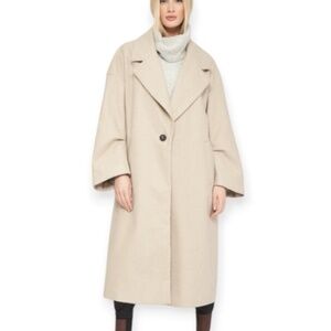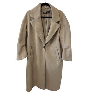 Zara Oversized Tan Cozy Long Pea One Button Neutral Long Coat SZ XS