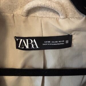 Zara Oversized Tan Cozy Long Pea One Button Neutral Long Coat SZ XS