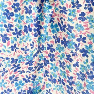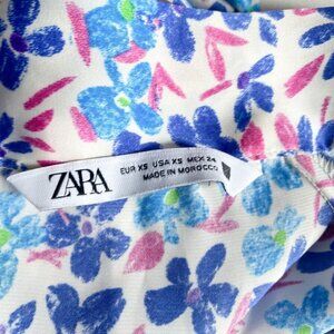 This beautiful Zara blouse features a stunning painted floral pattern in shades of blue.