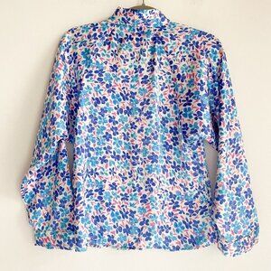 Zara Painted Floral Blue Bow Neckline Long Sleeve Blouse XS